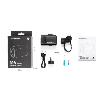Luz frontal ROCKBROS M6 de aluminio aleación recargable USB-C con 1000 lúmenes máximos y batería 2800mAh, perfecta para MTB y carretera nocturna. Modos inteligentes con sensor luz/vibración, lente anti-deslumbramiento y montaje manillar, IPX5 impermeable para lluvia.